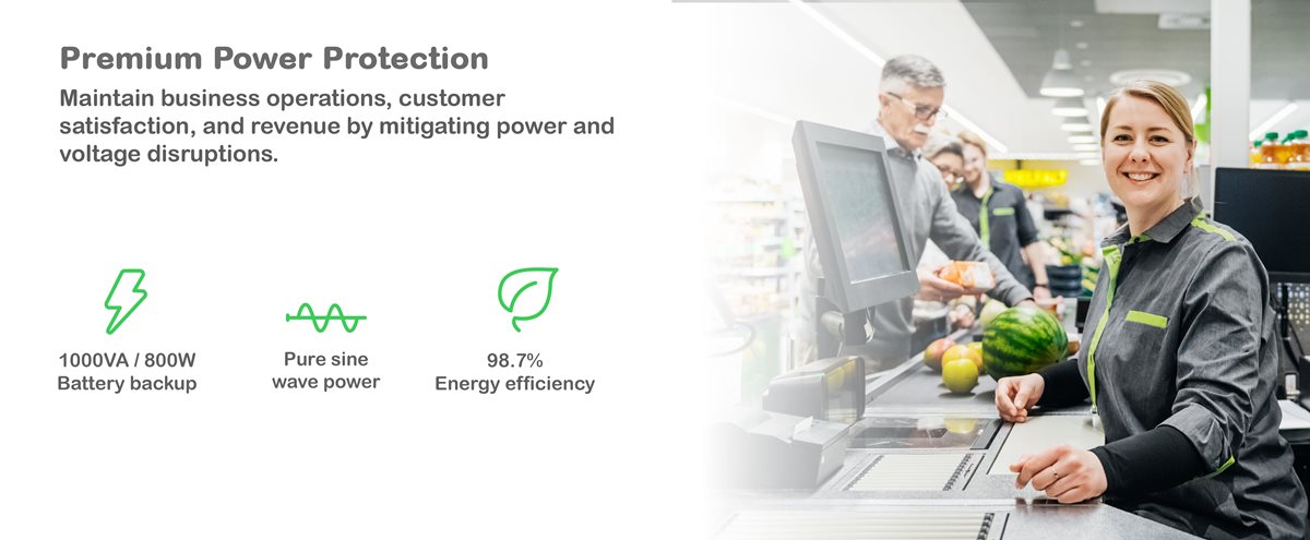 - Line-interactive topology with Automatic Voltage Regulation (AVR) for voltage fluctuations.