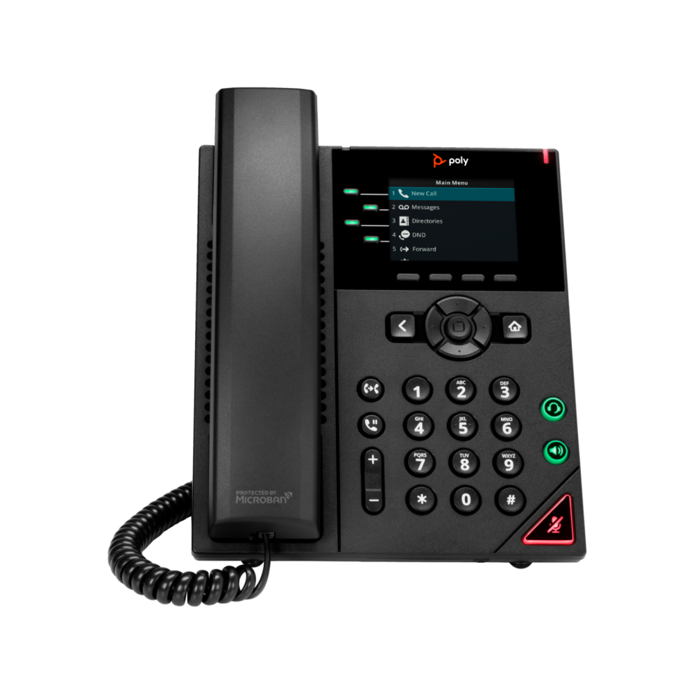 The Poly VVX 250 is designed as a versatile 4-line IP desk phone ideal for enterprises and office spaces. It combines a compact and ergonomic design with a full-color 2.8-inch display, advanced audio technologies, and support for 16 SIP line registrations, allowing for seamless and efficient communication. Connectivity through dual Gigabit Ethernet ports with PoE support facilitates straightforward installation, adapting to various office setups.